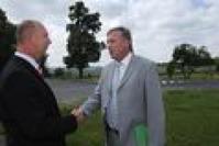 Ve 12 hodin Mirek Topolánek, Petr Skokan a další hosté přestřihli pásku při slavnostním zahájení stavby silnice 1/9 v obci Okrouhlá.