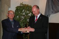Kmotry nového CD, na kterém je zachycena rozhlasová dramatizace historického detektivního románu Vlastimila Vondrušky Dýka s hadem, se staly včera večer v Rytířském sále dokského zámku hejtman Libereckého kraje Petr Skokan a herec Otakar Brousek st.