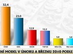 Volby do Sněmovny by na přelomu února a března vyhrála ČSSD s 32,4 procenta. ODS na druhém místě by získala 23 procent hlasů. Ve Sněmovně by zasedli i zástupci TOP 09, komunistů, lidovců a také Věcí veřejných. Vyplývá to z průzkumu agentury Sanep.