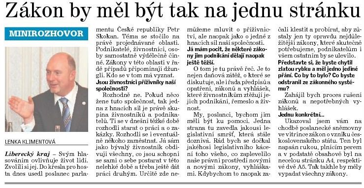 Hlavním tématem rozhovoru, který se mnou vedl Jablonecký deník, byli podnikatelé, živnostníci, osoby samostatně výdělečně činné. Zákony v této oblasti v řadě případů připomínají džungli. Kdo se v tom má vyznat?
